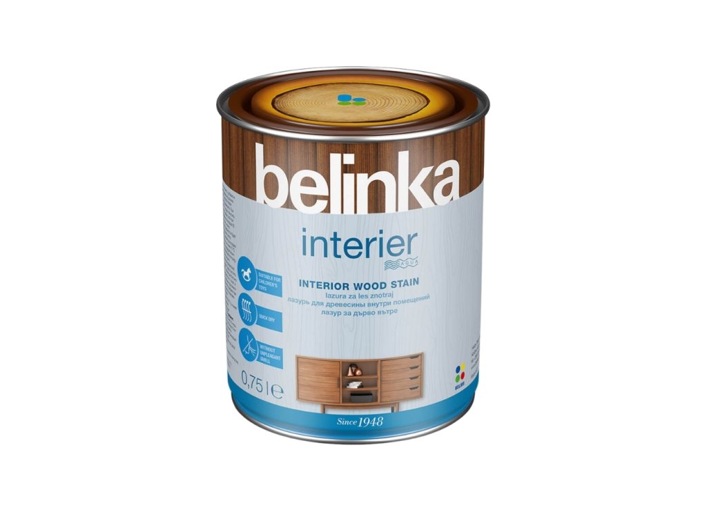 Belinka Interier je vodní disperze mléčného vzhledu. Při natírání vznikne nejdříve mléčný film, který po zaschnutí zůstane průzračný. Vzhled povrchu bude lepší, pokud ho po prvním nátěru jemně přebrousíme a odprášíme.